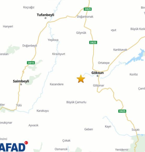 AFAD, Kahramanmaraş'ın Göksun ilçesinde 4.2 büyüklüğünde bir depremin meydana geldiğini duyurdu.
