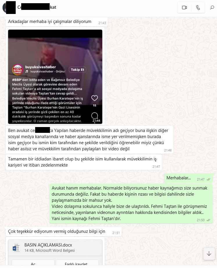 Geçtiğimiz günlerde Sivas Belediye Meclisi’nde Belediye Başkanı Adem Uzun ile meclis üyesi Fehmi Taştan arasında yaşanan tartışmaların ardından, Fehmi Taştan’a ait gizli çekim görüntülerinin yayınlanmasıyla gündem daha da hareketlenmişti. Konuyla ilgili adı geçen BBP Belediye Meclis Üyesi Burhan Karatepe, iddialara yanıt veren bir açıklama yaptı.