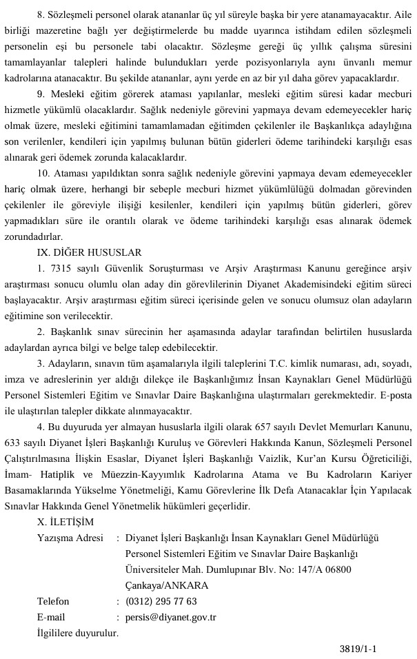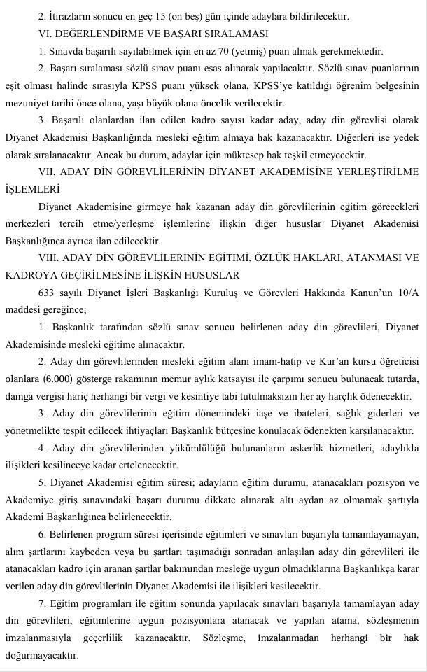 Sınavı başarıyla tamamlayan adaylar, Diyanet Akademisi’nde mesleki eğitime alınacak. Eğitim sürecinin ardından başarılı olan adayların atamaları gerçekleştirilecek.