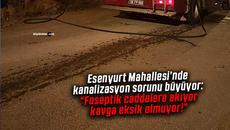 buyuksivas.com WhatsApp ihbar hattımıza (0555 898 15 58) ulaşan Muhlis Gün isimli vatandaş, Esenyurt Mahallesi'nde yaşanan altyapı sıkıntılarına dikkat çekti. Kanalizasyon hattı bulunmayan bölgede vatandaşlar foseptik çukurları kullanmak zorunda kalıyor. Ancak bazı kişilerin foseptik atıklarını doğrudan caddeye boşaltması mahallede hem kötü kokulara hem de kavgalara neden oluyor.