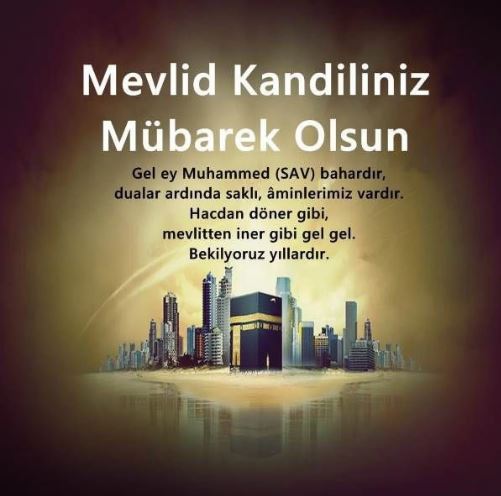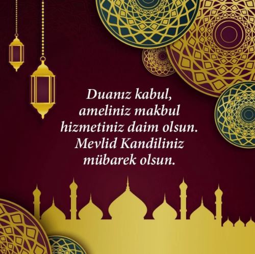 Sofranız afiyetli, paranız bereketli, kararlarınız isabetli, yuvanız muhabbetli, kalbiniz merhametli, bedeniniz sıhhatli, yüzünüz mutlu, Mevlid kandiliniz kutlu olsun.