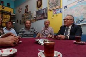 Kangal'da çarşı esnafına da selam veren Vali Şimşek, ilçe halkıyla çay eşliğinde sohbet etti. Ardından Kangal Belediyesini ziyaret eden Vali Şimşek, Ahmet Kürşat Apaydın'dan brifing aldı.