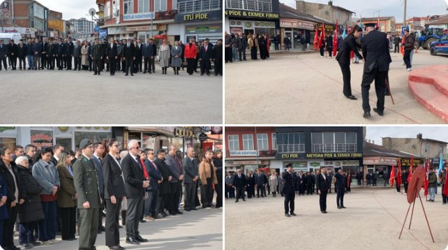 İlçe merkezinde bulunan Atatürk Anıtı önünde düzenlenen törene Kaymakam Merve Ayşe Büyükuçar, Garnizon Komutanı Üsteğmen Gazi Karaca, Belediye Başkanı Mehmet Öztürk, ilçe protokolü, öğrenciler ve vatandaşlar katıldı. Program, saygı duruşu ve İstiklal Marşı’nın okunmasıyla başladı.