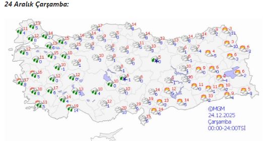Meteoroloji Genel Müdürlüğü’nün (MGM) son verilerine göre, Türkiye genelinde sıcaklıklar şu an için mevsim normallerinde seyrediyor. Ülke genelinde az bulutlu, parçalı bulutlu ve yer yer yağışlı bir havanın etkili olması bekleniyor.