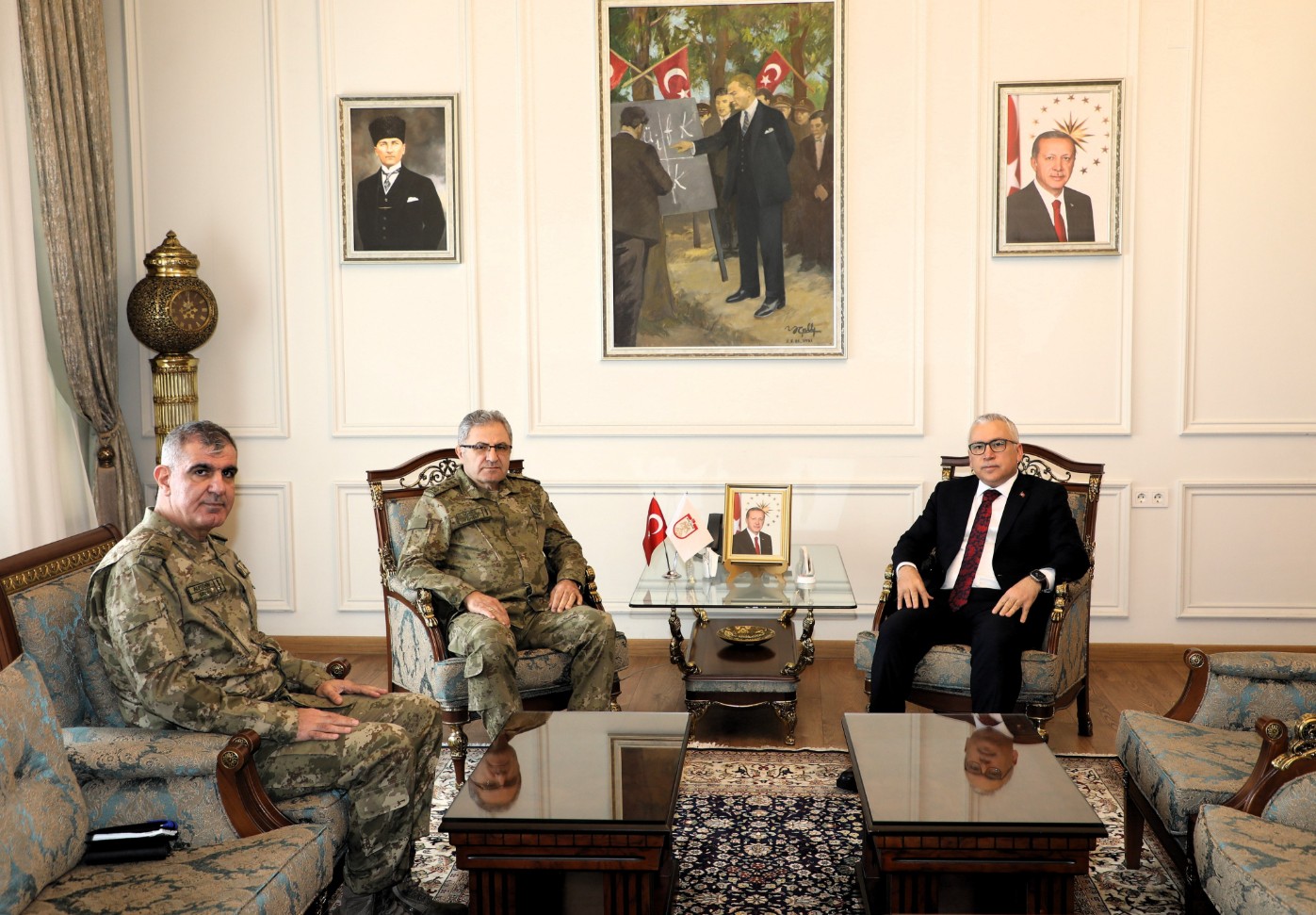 Üst düzey askeri heyet, kentte yürütülen çalışmalar ve bölgesel değerlendirmeler hakkında görüş alışverişinde bulunmak üzere Valilik makamında bir araya geldi.