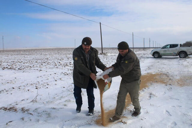 'da kar yağışı sebebiyle yiyecek bulmakta sıkıntısı çeken hayvanları için doğaya yem bırakıldı.