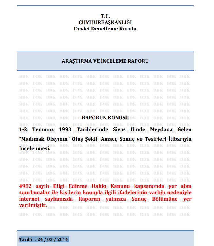 Devletin 24 03.2014 tarihinde, 1-2 Temmuz 1993 tarihlerinde Sivas ilinde meydana gelen “Madımak Olayının” oluş şekli, amacı, sonuç ve tesirleri itibarıyla incelenmesi denilerek yayınlanan Devlet Denetleme Kurulu (DDK) raporunda ki ifadenin, "Madımak Olayı" olmasına rağmen, yani yaşanan üzücü olayın "Madımak Olayı" şeklinde devletin kayıtlarında yer almasını hiçe sayılarak, Sivas ve Sivaslıları itibarsızlaştırmak için "Sivas Katliamı" ifadesini kullananlar hakkında geçtiğimiz gün ki anmalarda Vali Salih Ayhan, "doğru bulmuyorum" diyerek Sivas'a sahip çıkmıştı.