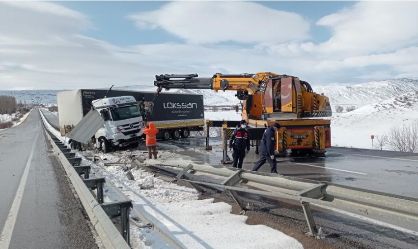 Edinilen bilgiye göre Sivas’tan Erzincan istikametine gitmekte olan E.K (32) yönetimindeki 38 JJ 397 plakalı Mercedes marka tır, yoldaki buzlanma nedeniyle kayarak yolda ters döndü.