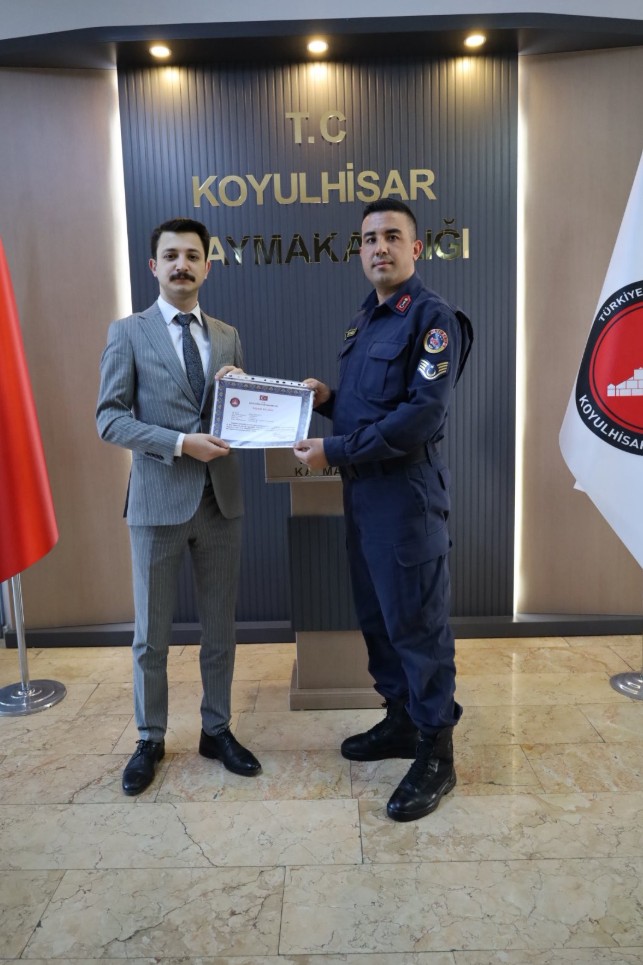 Koyulhisar, Kaymakamlık, jandarma, başarı belgesi, Muhammed Hasan Kukuş