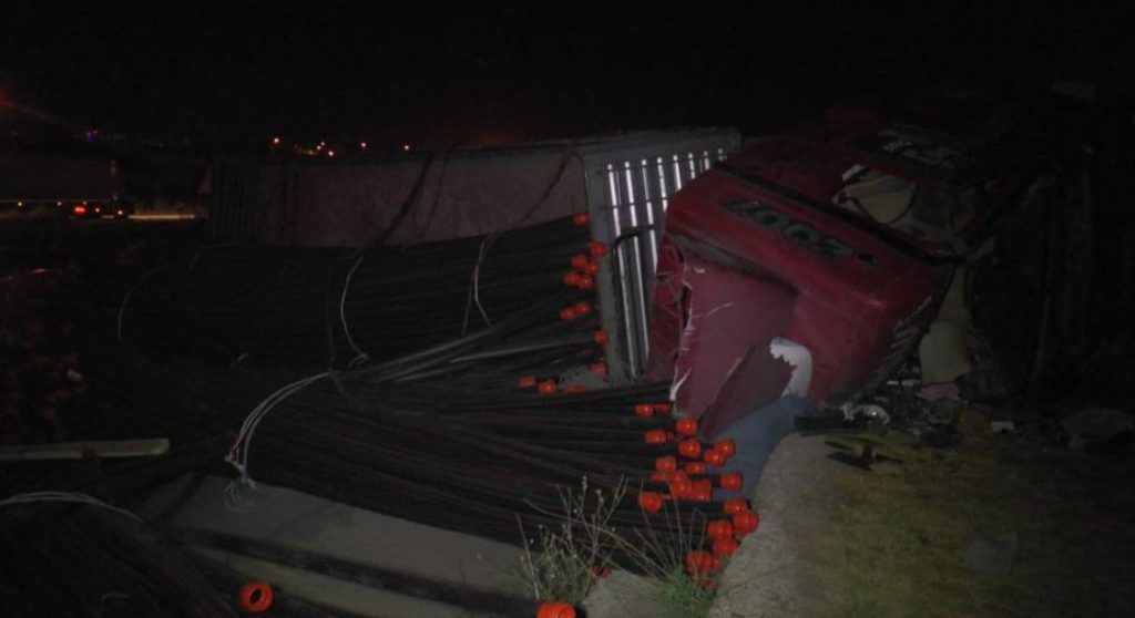 Kayseri-Sivas yolunda plastik boru yüklü tırın devrildiği kazada 1 kişi hayatını kaybetti, 1 kişi de ağır yaralandı.