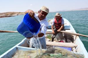 Ağına düşen balıkları toplamak için ertesi gün erken saatlerde teknesiyle yeniden baraja açılan Devim, yakaladığı levrek, yayın ve alabalıkları Yamula Su Ürünleri Kooperatifine satarak geçimini sağlıyor.