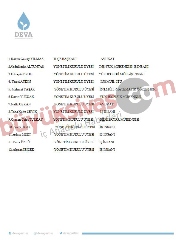 İşte siyasette iz bırakması beklenen Deva Partisi Sivas Merkez İlçe Yönetim kurulu listesi...