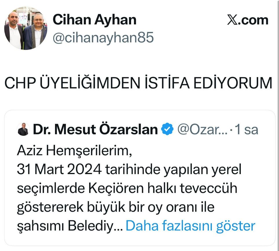 Keçiören Belediyesi, Mesut Özarslan, CHP istifa, Serkan Bedirhanoğlu, Cihan Ayhan, Ankara siyaseti, belediye meclisi, siyasi gelişmeler