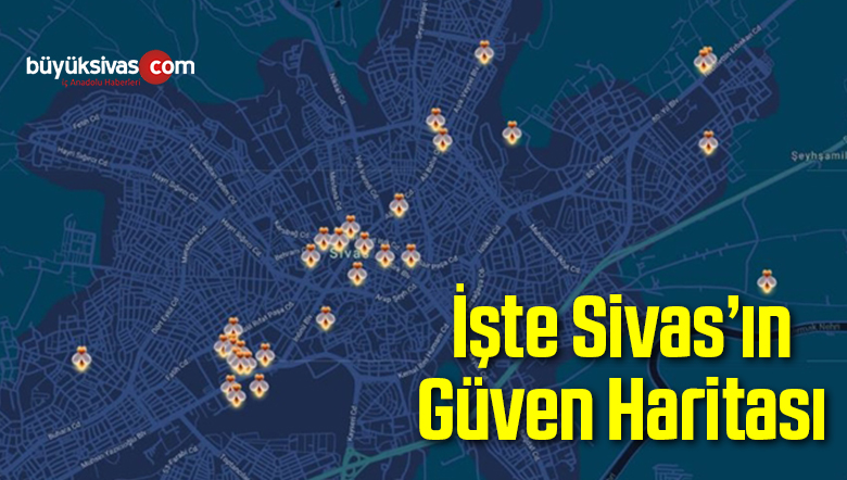 İşaretlenen alanlara bakıldığında başta İstanbul, Ankara ve İzmir olmak üzere birçok büyükşehrin yanı sıra Sivas´ta da kadınlar kendilerini güvenli hissetmiyor.