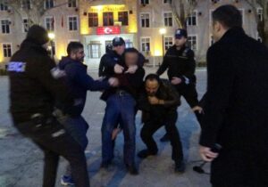 Tokat’ta miras anlaşmazlığı nedeni ile üzerine benzin dökerek kendini yakmak isteyen vatandaşı polis memurları engelledi.