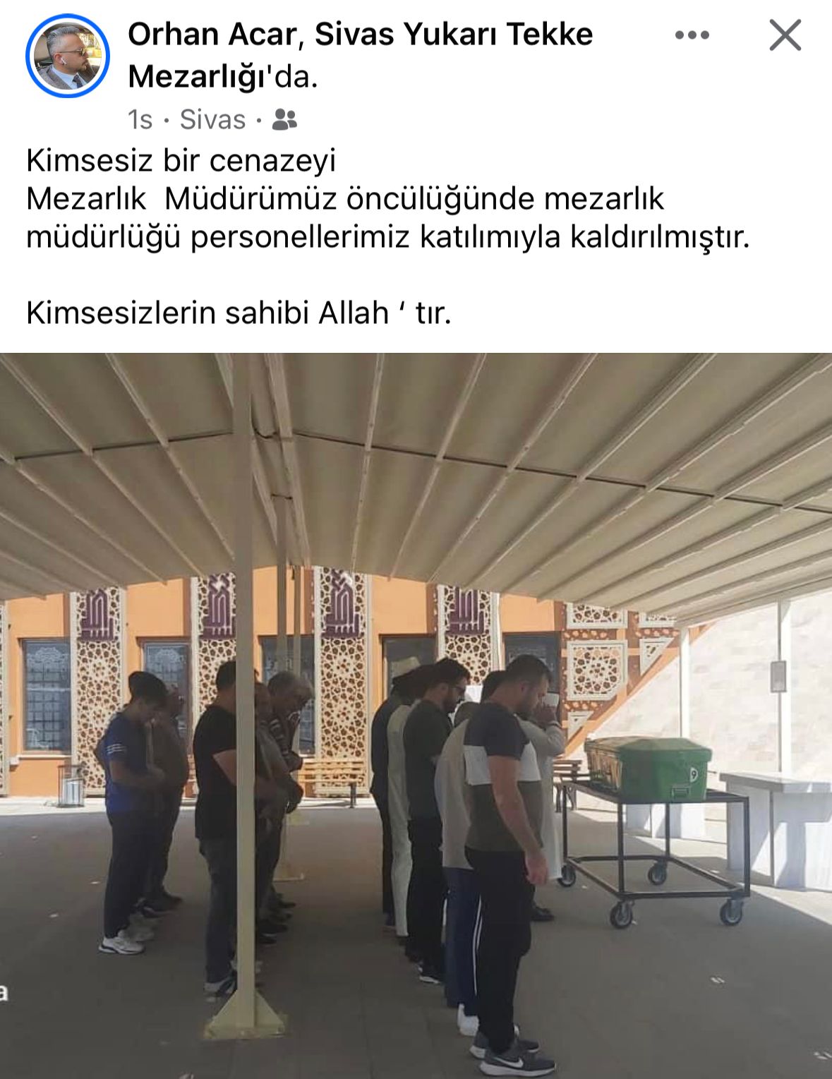 Müdürlük çalışanı sosyal medya hesabından yaptığı paylaşımda "Kimsesiz bir cenazeyi Mezarlık Müdürümüz öncülüğünde mezarlık müdürlüğü personellerimiz katılımıyla kaldırılmıştır. Kimsesizlerin sahibi Allah ‘ tır." mesajıyla birlikte kılınan cenaze namazını yayınladı.
