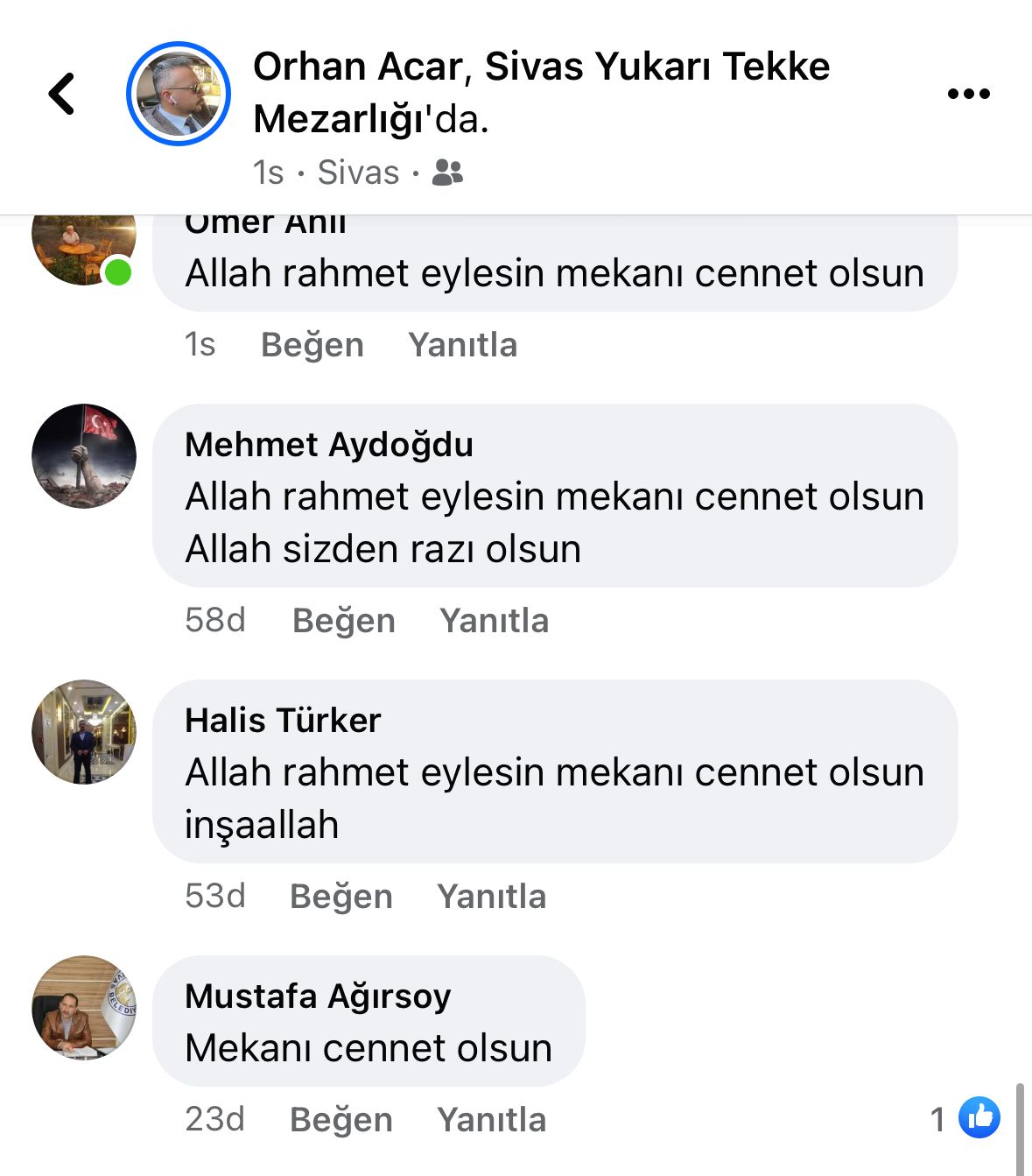 Paylaşıma Mezarlıklar Müdürü Mustafa Altınsoy "Mekanı cennet olsun" diyerek yorum yaptı.