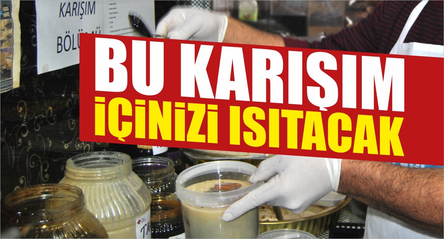 Kış aylarının sert geçtiği Sivas'ta, esnaf Hüseyin Derviş'in içinizi sıcak tutacak bir karışım oluşturdu. Bu karışım içerisinde toplam 12 adet ürün bulunuyor.