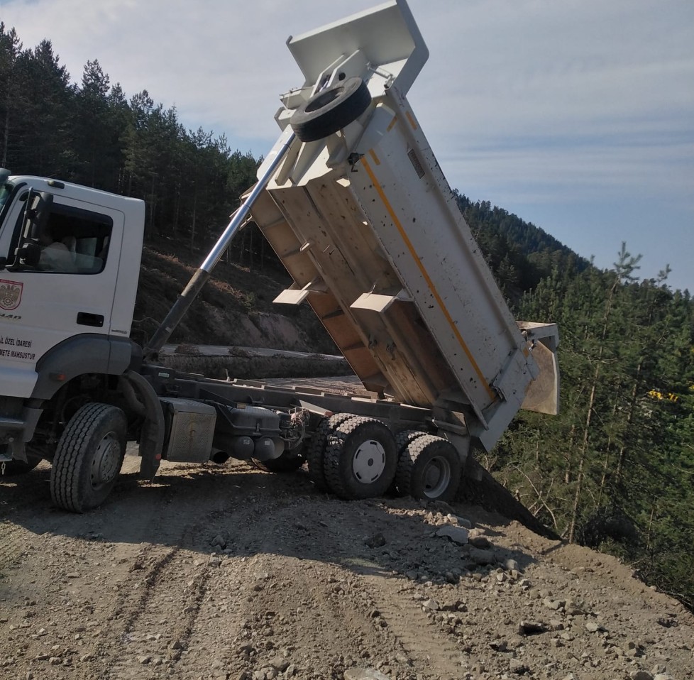 Bu kapsamda Koyulhisar ilçesine bağlı Kızılelma Köyü’nde onarım ve stabilize yol çalışmaları devam ediyor.