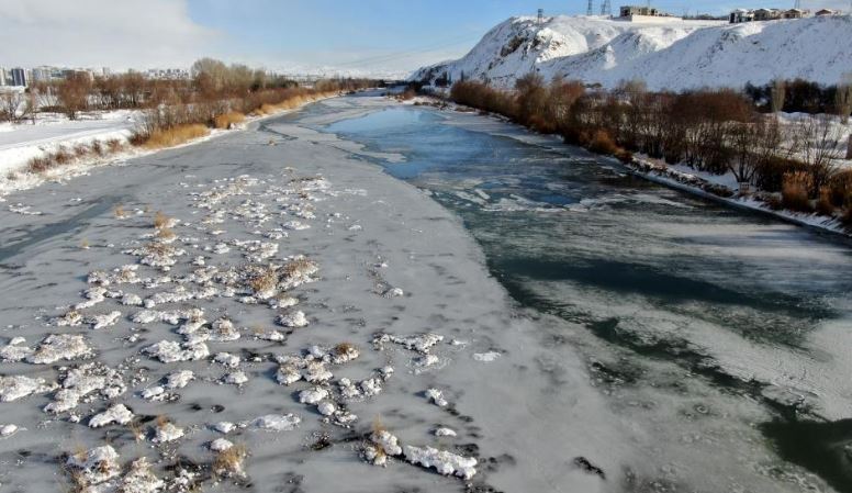 Kızılırmak’ın yüzeyi buzla kaplandı