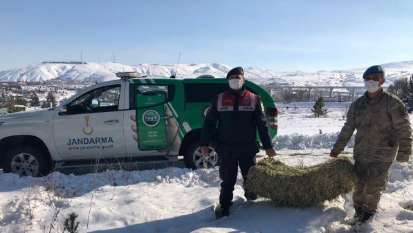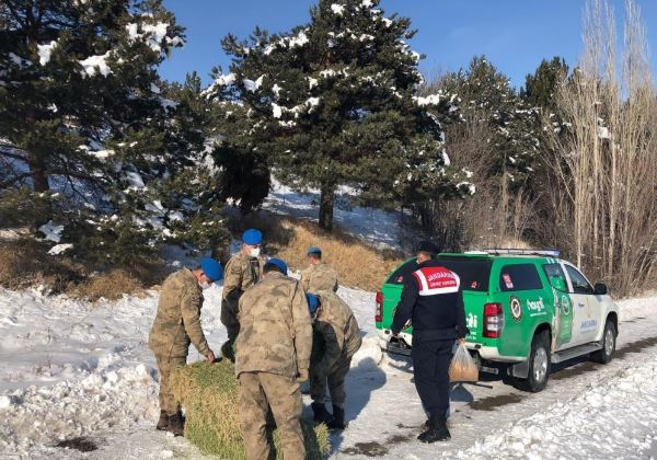 Sivas İl Jandarma Komutanlığı Çevre Doğa ve Hayvanları Koruma Tim Komutanlığı ve Asayiş Komando Bölük komutanlığı ekipleri soğuk kış günlerinde yaban hayvanlarını unutmadı.