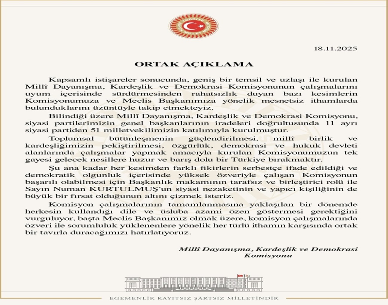 Paylaşılan ortak açıklamada, komisyonun geniş temsil ve uzlaşı ile 11 siyasi partiden 51 milletvekilinin katılımıyla kurulduğu hatırlatıldı. Açıklamada şu ifadelere yer verildi: