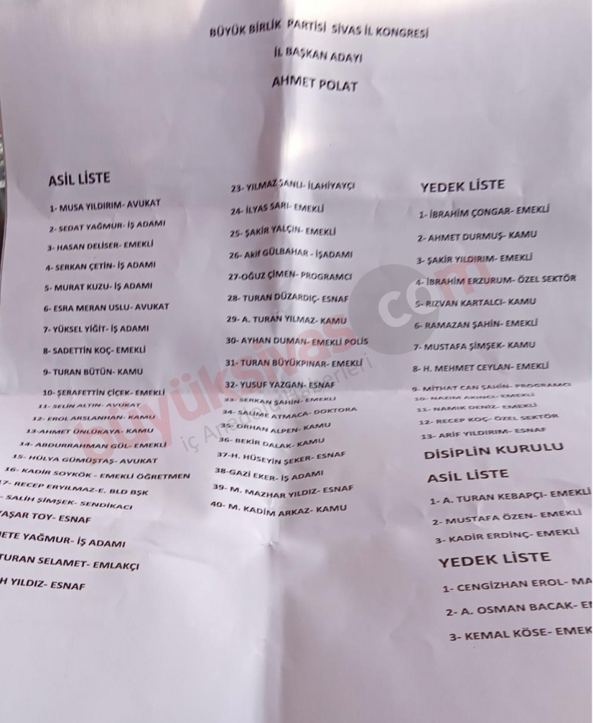 Bu sonuçlara göre mevcut başkana Sivas'ta BBP'nin iç muhalefetinin süreceği yorumları yapıldı.