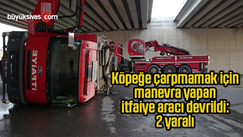 Köpeğe çarpmamak için manevra yapan itfaiye aracı devrildi: 2 yaralı
