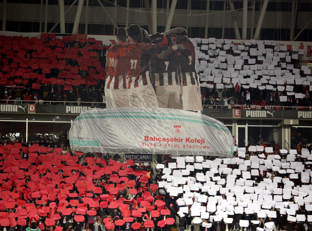 Kırmızı-beyazlı taraftarlar, Sivasspor-Galatasaray karşılaşması öncesinde Bahçeşehir Koleji Sivas 4 Eylül Stadyumu’nda müthiş bir atmosfer ortaya koydu. Günlerdir süren koreografi hazırlığı, maç öncesinde başarılı bir şekilde tamamlandı. Yiğidolar sahaya çıkarken, stadyumda fon müziği çaldı, tribünlerden ise müthiş bir koreografi yükseldi.