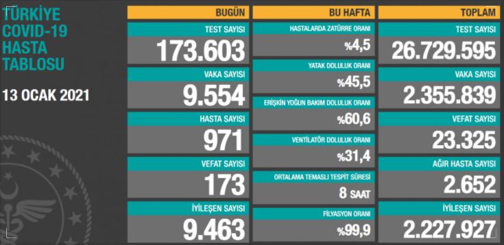 Koronavirüs Tablosu 13 Ocak'ta nasıl şekillendi? Ölen ve yeni vaka sayısı