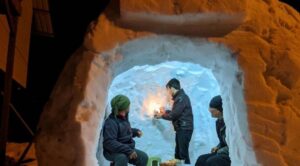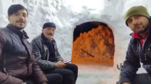 Artvin’in Şavşat ilçesinde yoğun kar yağışı sonrası köylüler iglo ev yaparak içinde gaz lambası ışığında çay demleyip içtiler.