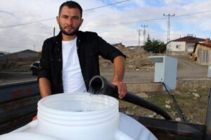 Tankerler ile su getiriyorum köy halkı da bu şekilde su ihtiyacını karşılamış oluyor. Köyde eskiden 25 hane vardı fakat şu an 7-8 hane kaldı. Su problemi nedeniyle köyümüz göç veriyor.