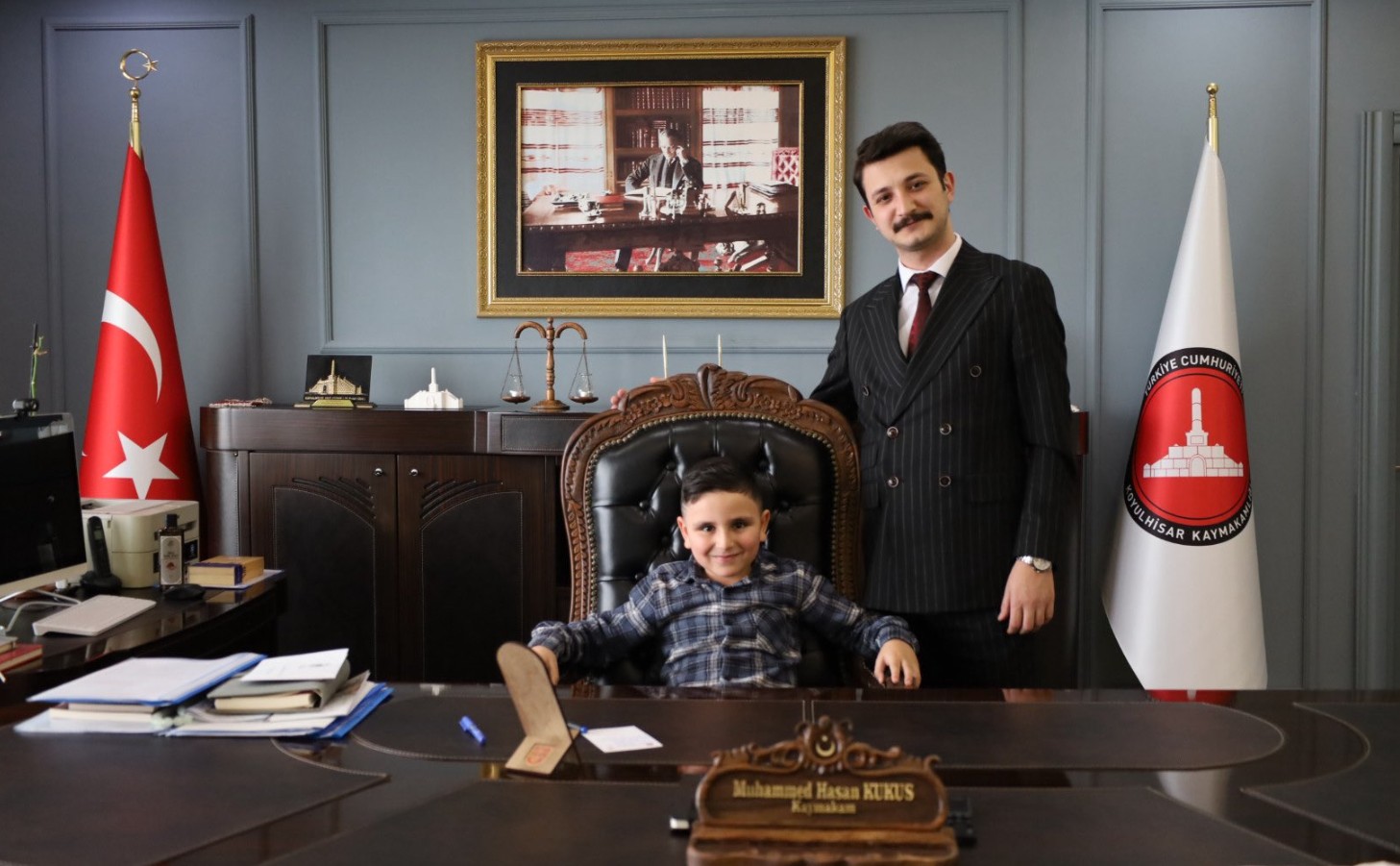Koyulhisar Kaymakamı Muhammed Hasan Kukuş, evde eğitim alan özel öğrenci Eymen Alperen Aluç’u ailesiyle birlikte makamında ağırladı. Ziyarette Eymen Alperen’e karnesini takdim eden Kaymakam Kukuş, öğrenciyi başarısından dolayı tebrik etti. Öğrenciyle bir süre sohbet eden Kaymakam Kukuş, azmi ve gayretiyle örnek olan Eymen Alperen’e eğitim hayatında başarılar dileyerek ailesine de emeklerinden dolayı teşekkür etti. Ziyaret, duygu dolu anlara sahne olurken, özel öğrencilerin eğitim süreçlerine verilen önemin altı bir kez daha çizildi.