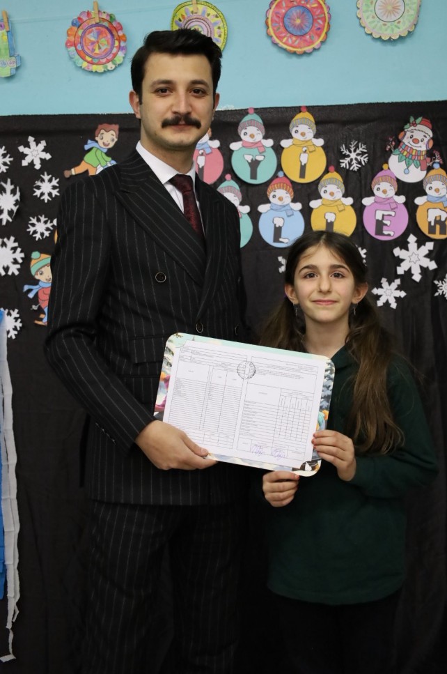 İlçe genelinde düzenlenen karne programlarında hem evde eğitim alan özel bir öğrenciye yönelik anlamlı bir ziyaret gerçekleştirildi hem de okullarda düzenlenen törenlerle öğrencilerin mutluluğu paylaşıldı.
