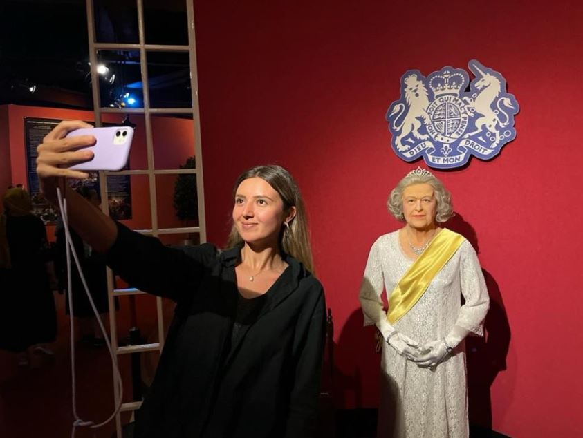 Müzede Kraliçe 2. Elizabeth balmumu heykeli ile fotoğraf çekimi için yoğun talep oluştuğunu belirten Balmumu Heykeller Müzesi Halkla İlişkiler Birimi personeli Güliz Ünsal Kovancısoy, “Müzemizde ölüm haberinden sonra Kraliçe Elizabeth heykeli ile fotoğraf çekinmek isteyen ziyaretçi sayısında artış var.