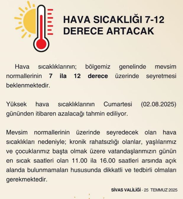Sıcaklıklar 7-12 Derece Artacak! Sivas Valiliğinden Kritik Uyarı