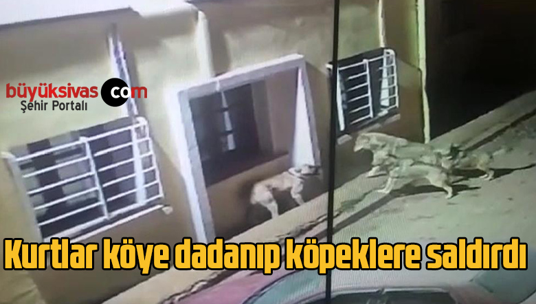 Sivas’ta aç kalan kurtların köye inerek köpeklere saldırma anı güvenlik kameralarına yansıdı.