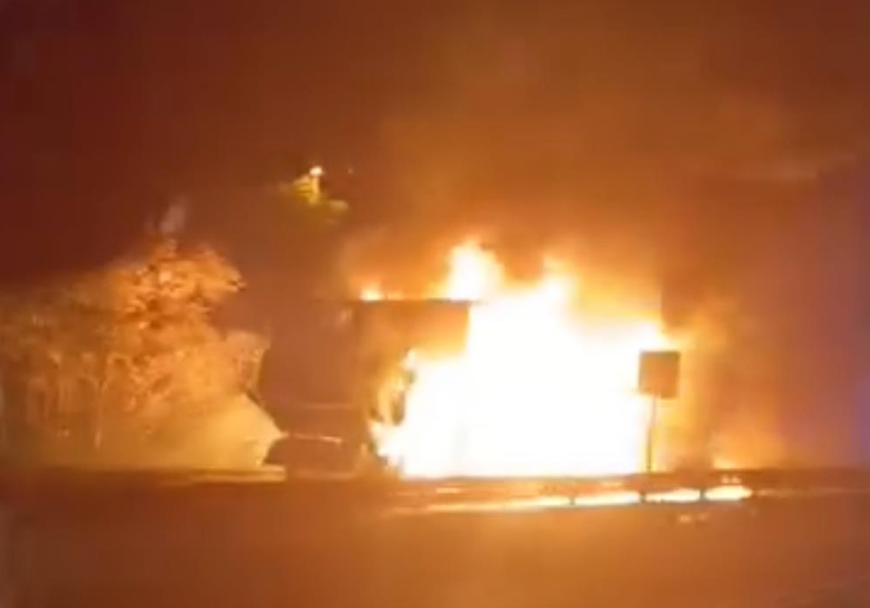 Lastik patladı! Jant kıvılcım çıkardı! Tır tamamen yandı!