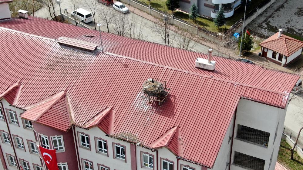 Sivas’ta bir ilkokul 40 yıldır aynı leylek ailesini çatısında misafir ediyor. Okulun çatısında leylekleri görenler baharın geldiğini anlıyor.