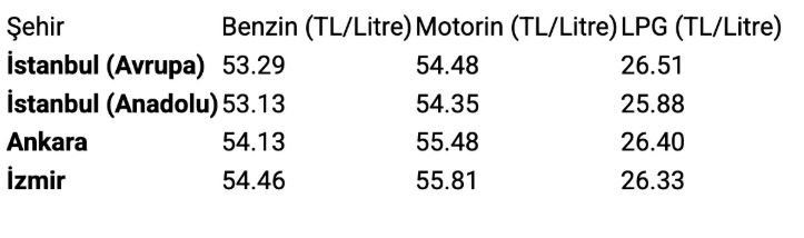 Benzin ve motorinde değişiklik yok