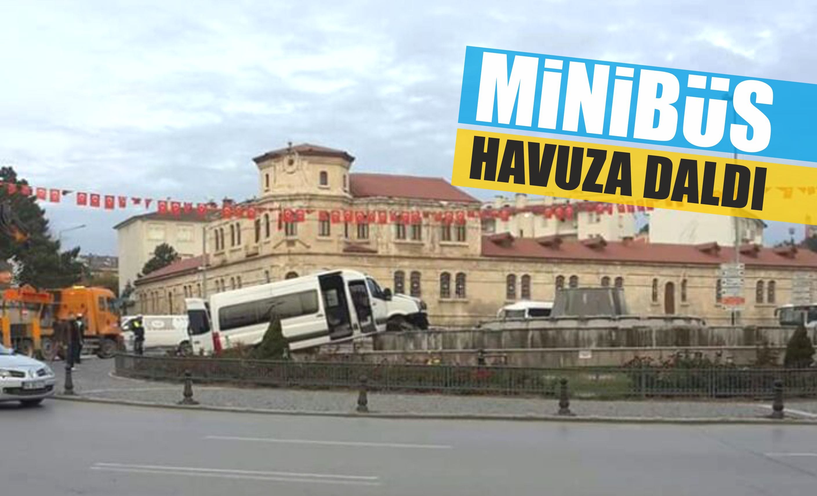 Bugün sabah saatlerinde İnönü Bulvarını istikametinden Kent Meydanı’na doğru yol alan minibüs virajı alamayarak, kent meydanında bulunan havuza uçtu.