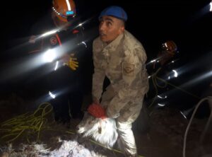 Sivas'ın Divriği ilçesinde sarp kayalıklarda mahsur kalan keçi, AFAD ekiplerince kurtarıldı. AA