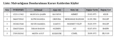 04 Nisan 2023 tarihinde yayımlanan karar kapsamında, terörle mücadele kapsamında terörizmin finansmanının önlenmesi amacıyla mal varlıkları dondurulan bu kişilerin durumları, yapılan yeni değerlendirme sonrası değişti.