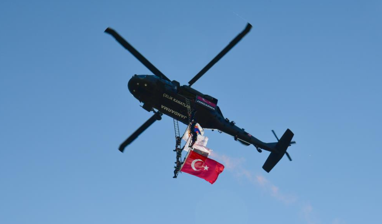 Etkinliklerin en dikkat çeken bölümlerinden biri ise Jandarma Genel Komutanlığı’na bağlı Çelik Kanatlar Timi’nin Skorsky helikopterlerle yaptığı nefes kesen gösteriler oldu.
