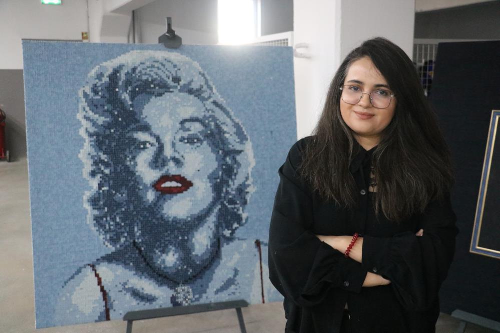 Bu yüzden kendi mesleğime yakın bulduğum Moda Tasarım bölümünü okumaya karar verdim. 2 sene boyunca 25’e yakın çalışma yaptım. Einstein, Mona Lisa, Marley Monroe, Frida ve Âşık Veysel gibi dünya çapında ünlü isimleri çalıştım. Bu tablolarda farklı teknikler kullanıyorum. Örneğin Marley Monroe ilk çalışmalarımdan. Zorlu bir başlangıçtı benim için. 1 ay hazırlanma süreci, 6 hafta uygulama süreci oldu. Önce alt zeminde tabloya resmi çiziyorum. Sonra kumaş seçimi, kumaşların renklerine göre ayrımı, parçalara ayrılması derken bir hayli zaman alıyor. Marley Monroe 22 bin 500 parça kumaş ve 11 renk tonu ile tamamladım. Farklı tekniklerle atık kumaşları değerlendirip bilindiği adı ile geri dönüşüm, bizim deyişimizle ileriye dönüşüm çalışmalar yapıyoruz. Sürdürülebilirliği desteklemek, doğayı korumak, atık eşyalarla kumaşlarla tekrar neler yapılabilirliğe dikkat çekerek dünyamızın geleceğine dair bir şeyler yapıyoruz” ifadelerini kullandı. iha
