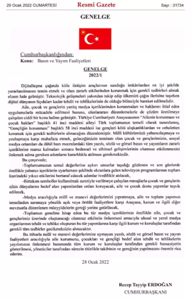 Resmi Gazete'nin bugünkü sayısında Cumhurbaşkanı Recep Tayyip Erdoğan'ın imzasıyla, FOX TV'nin son haftalarda tartışma konusu olan 'Maske Kimsin Sen?' programına ilişkin genelge yer aldı.