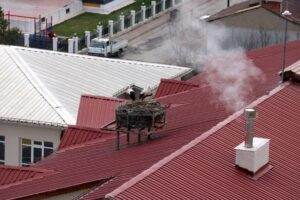 Beton binaların arasında mahalle sakinlerine ve öğrencilere doğal yaşamın güzelliğini yaşatan leylekler, öğrencilerin göz bebeği.