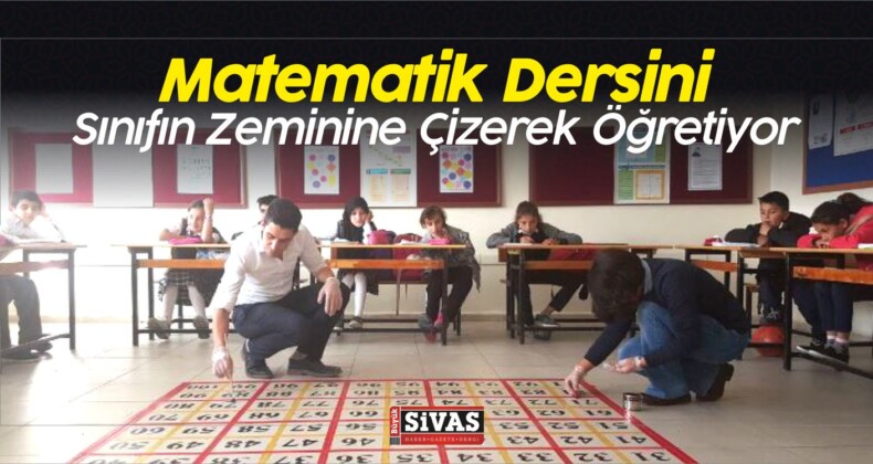 Matematik Dersini Sınıfın Zeminine Çizerek Öğretiyor