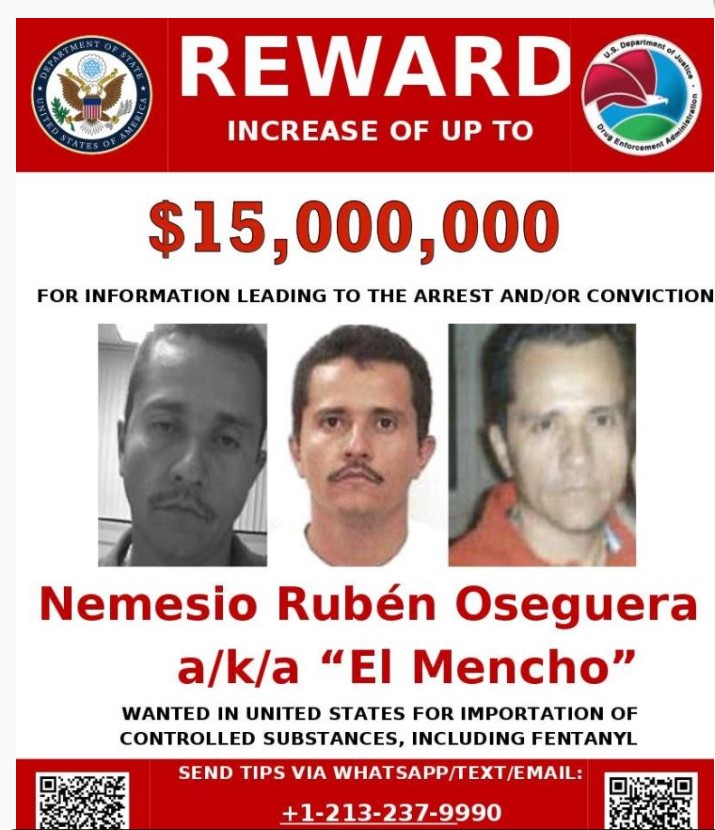 ABD tarafından başına 15 milyon dolar ödül konulan El Mencho’nun öldürülmesinin ardından bölgede güvenlik önlemleri artırılırken, olaylara ilişkin gelişmeler yakından takip ediliyor.