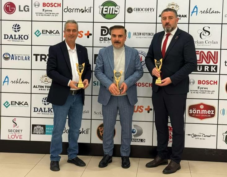 Kemal Doğan, Şeref Gülmez ve Fatih Deveci, İstanbul’da katıldıkları ödül töreninde Sivas Bileşenleri Konseyi tarafından düzenlenen 5’inci Uluslararası Sivas EN’leri Ödülleri'nde ödül aldı.